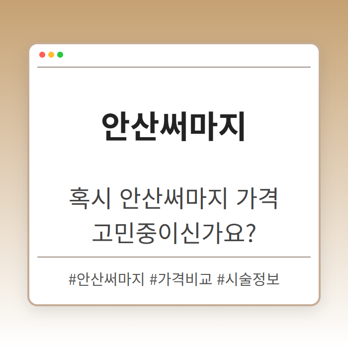 안산써마지의 가격과 효과를 고민하고 계신가요? 이 글에서는 안산에서의 써마지 시술에 대한 가격대, 시술 과정, 그리고 효과에 대해 자세히 안내해 드립니다. 고민하지 말고 정보에 바탕을 둔 결정을 내리세요! 안산 써마지 시술 가격 안산에서의 써마지 시술 가격은 클리닉마다 다소 차이가 있습니다. 일반적으로 얼굴, 바디 등 부위에 따라 가격이 …