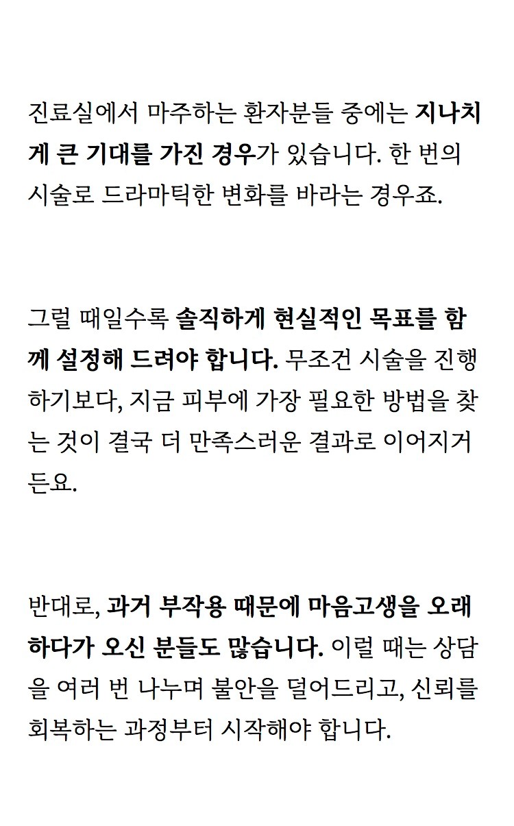의사의 경험과 실력을 확인하고, 시술 전·후의 케어 및 부작용에 대해 충분히 알아두면 더 안전하고 효과적인 시술을 받을 수 있습니다.