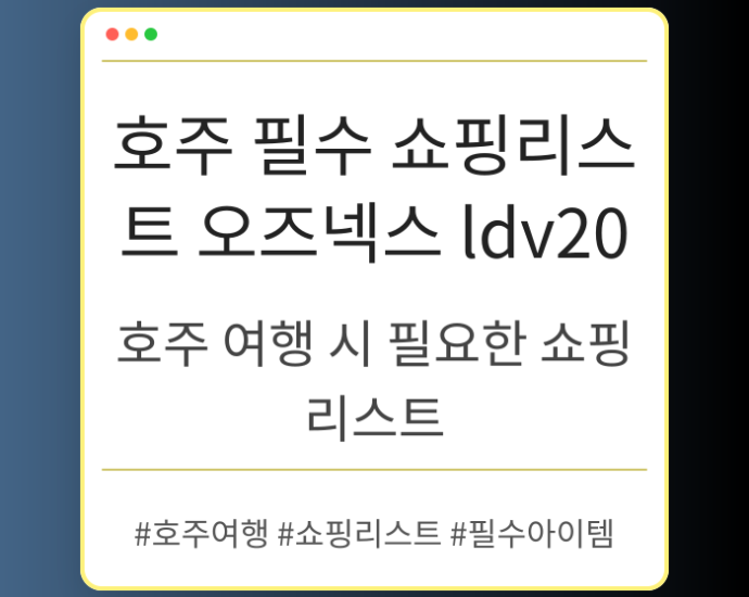 호주 여행 중 간과할 수 있는 필수 쇼핑 아이템들을 소개합니다. 현지의 인기 상품부터 여행의 소중한 기억으로 남길 수 있는 아이템까지, 호주에서 반드시 구입해야 할 리스트를 체크해보세요. 🛍️ 호주에서의 특별한 쇼핑 호주는 자연경관뿐만 아니라 다양한 쇼핑 아이템이 넘치는 곳입니다. 평소에는 쉽게 접할 수 없는 호주의 특산품과 현지 브랜드 제품들이 여행객들의 눈길을계속 읽기