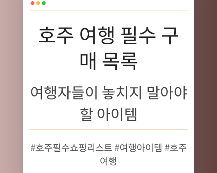 호주 여행 시 꼭 챙겨야 할 필수 쇼핑 아이템을 소개합니다. 여행 전에 미리 체크리스트로 활용해 보세요. 현지에서의 쇼핑 경험도 풍부해질 것입니다. 👜 호주 여행의 첫 시작, 쇼핑 리스트 만들기 호주는 아름다운 자연과 독특한 문화로 유명한 나라로, 여행을 떠난 사람들에게 항상 특별한 경험을 선사합니다. 특히 쇼핑이 중요한 역할을 하는데, 여행 중계속 읽기