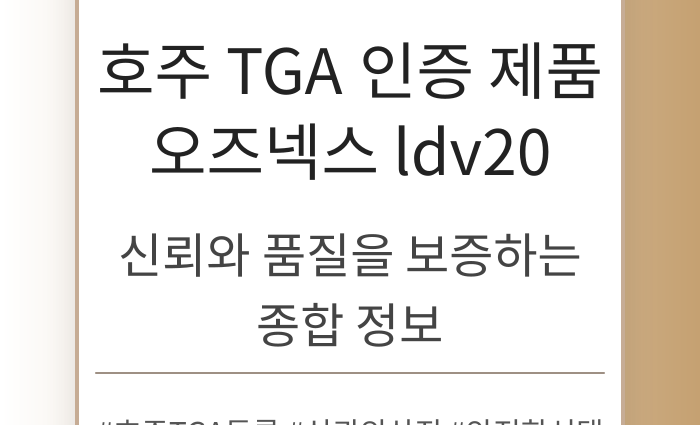 호주 TGA 인증 제품 오즈넥스 ldv20은 높은 신뢰성과 품질을 자랑합니다. 이 글에서는 TGA 인증의 중요성과 함께, 여러 제품에서 확인할 수 있는 장점 및 특징들을 살펴보겠습니다.